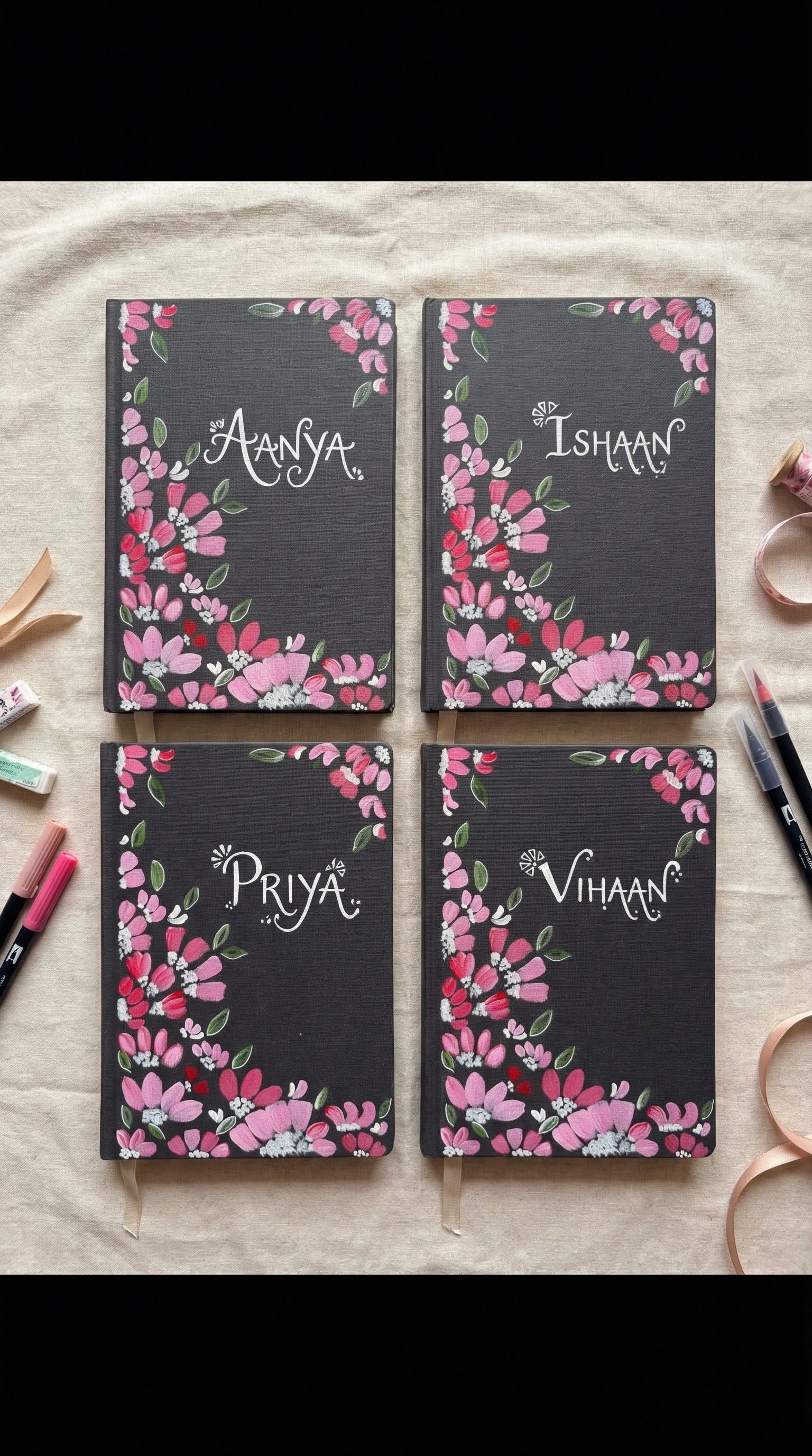 Artisanal hand-painted diary crafted with meticulous attention to detail, offering a canvas for your personal narratives. Each piece showcases bespoke customization options, allowing you to tailor design elements, layouts, and aesthetic preferences to align with your individual style. The combination of artistic craftsmanship and functional design creates a distinctive journaling companion that transcends ordinary stationery, elevating your daily reflections into a curated experience.